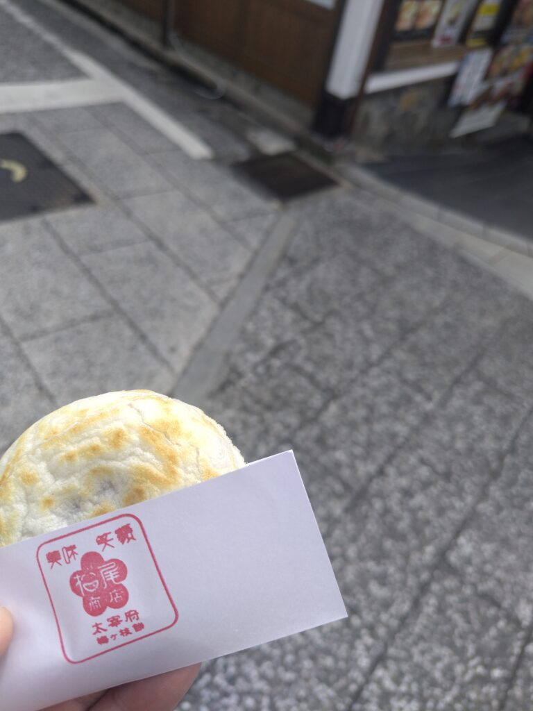 焼きたての梅が枝餅が絶品!香ばしい皮と熱々の餡子が最高でした。