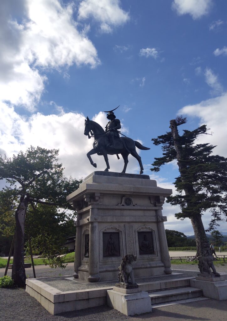 伊達政宗公の騎馬像をバックに写真を撮る人が多い。