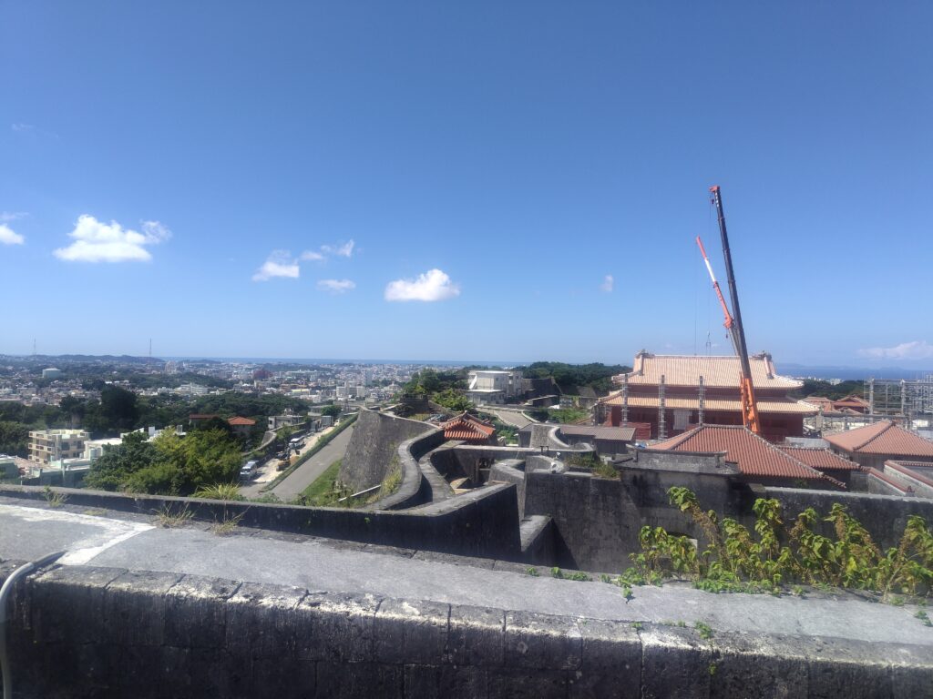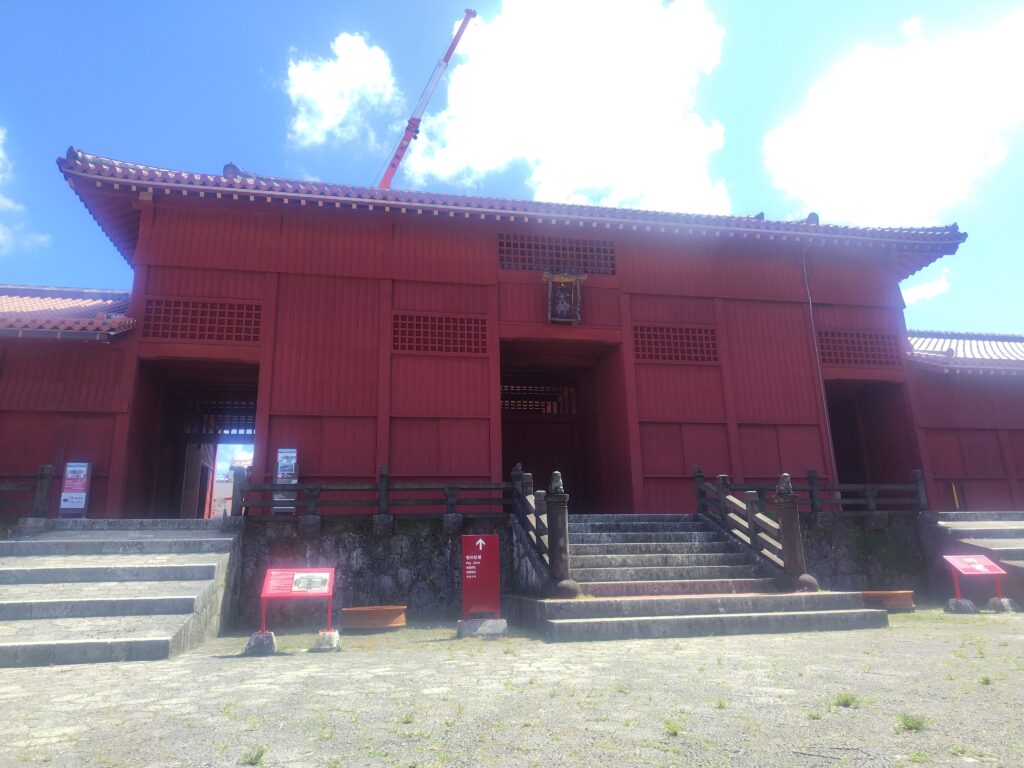 正殿は復元工事中だったが、鮮やかな朱色の城壁と門が映えていた。