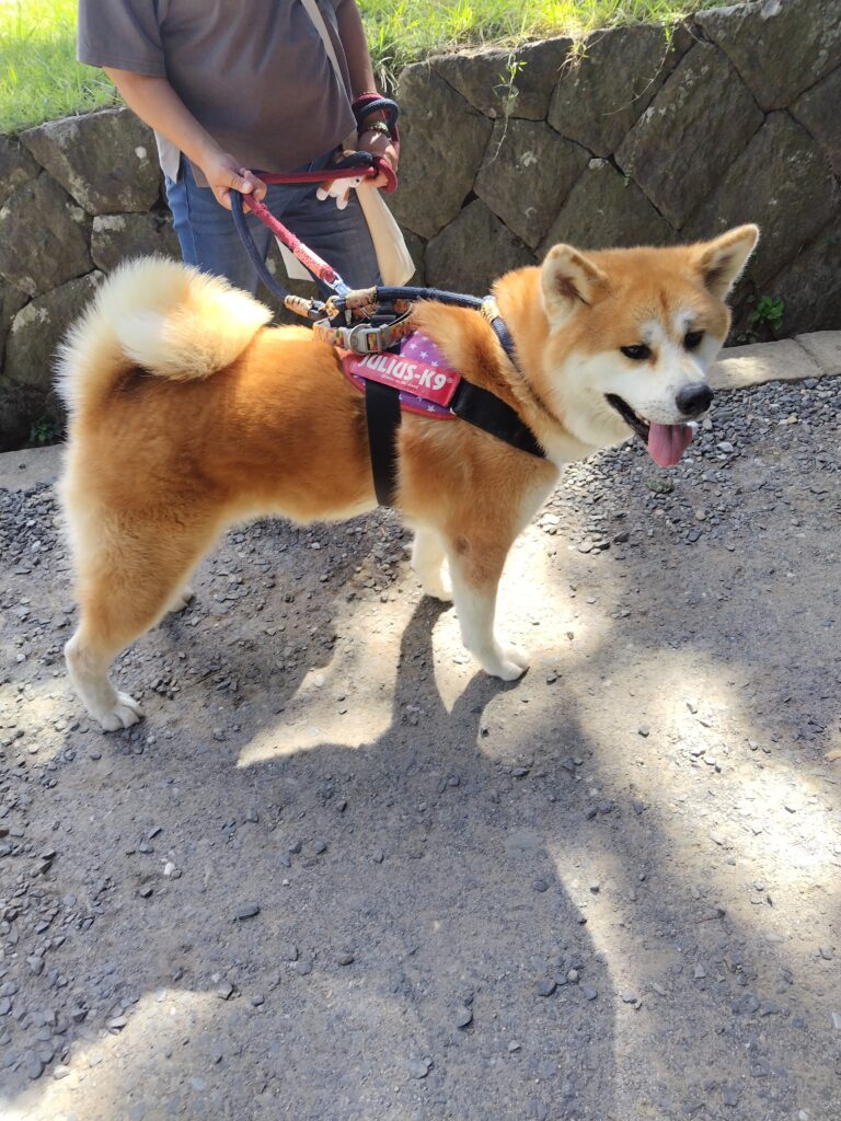 境内で「秋田犬」と遭遇。大きさに圧倒されるも、かわいさとのギャップに思わず撫でさせてもらった。モフモフ最高🐕✨