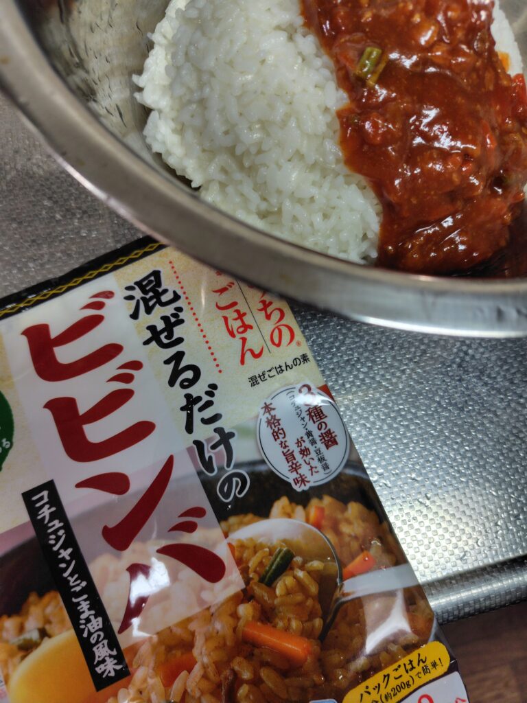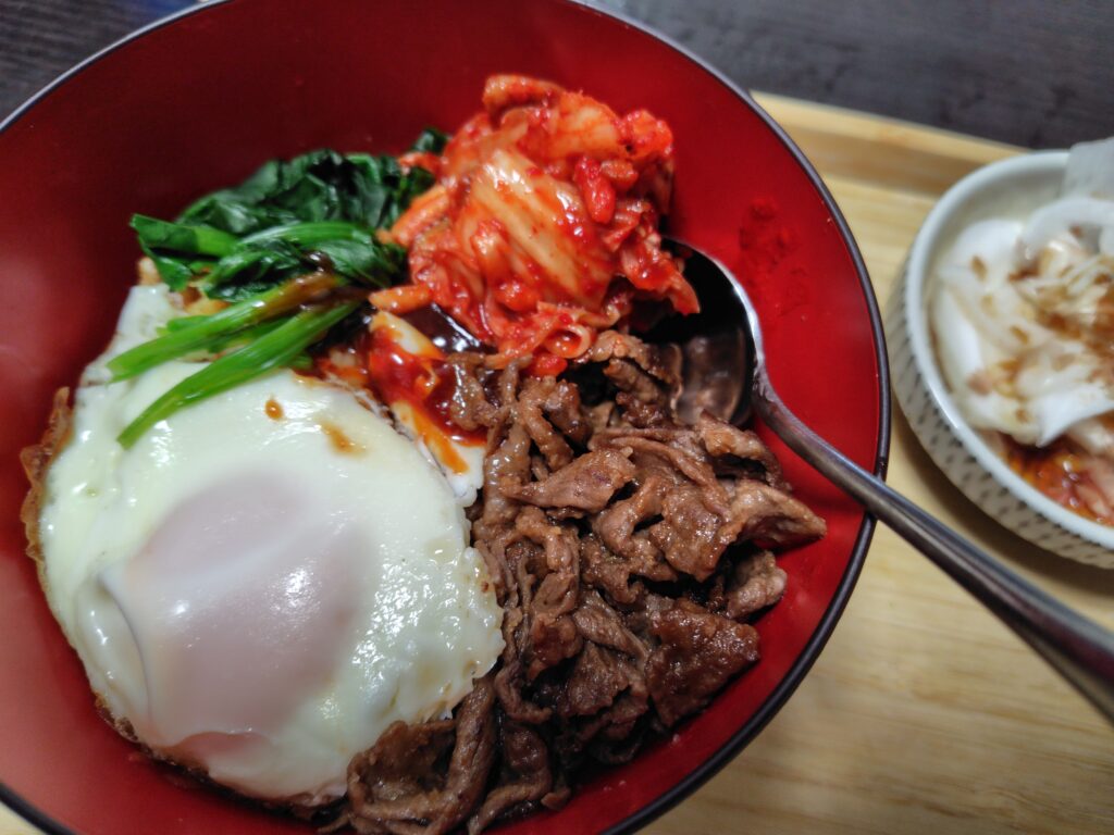 混ぜれば完成。家でも十分うまいビビンバになります。